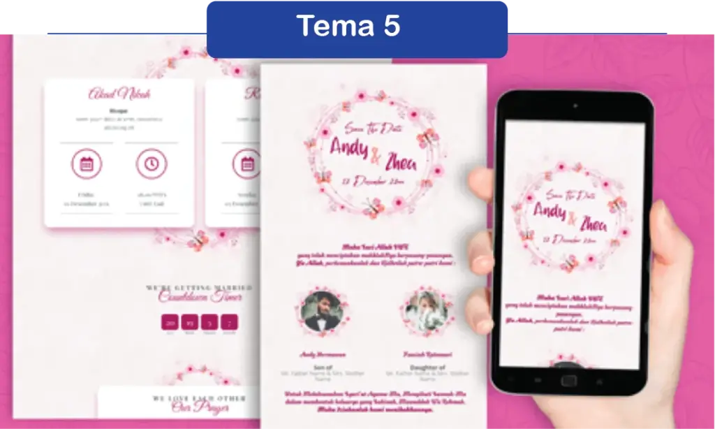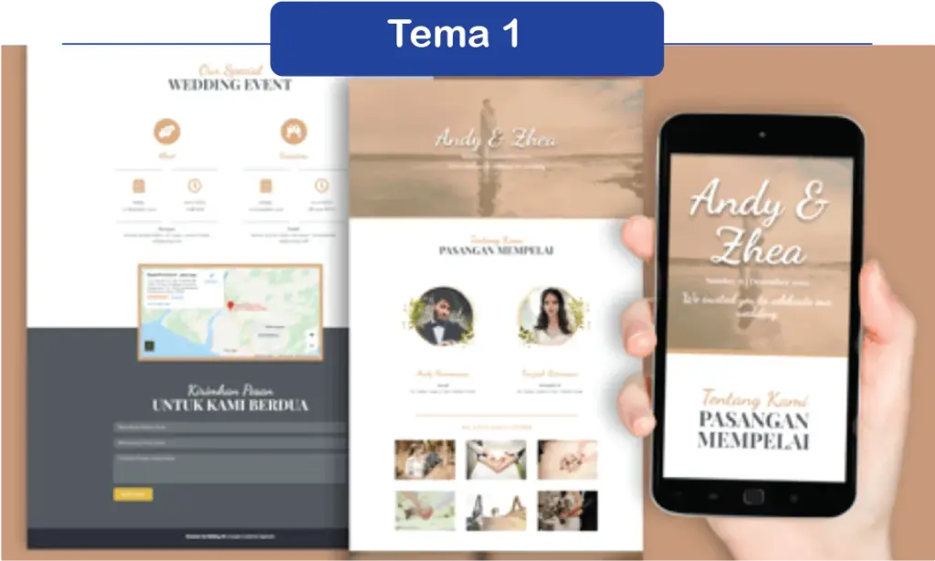 Pilihan desain eksklusif untuk menyempurnakan momen spesialmu. Hemat, praktis, dan siap sebar ke ribuan tamu via WhatsApp. Fitur lengkap dengan galeri foto, musik, dan RSVP otomatis.